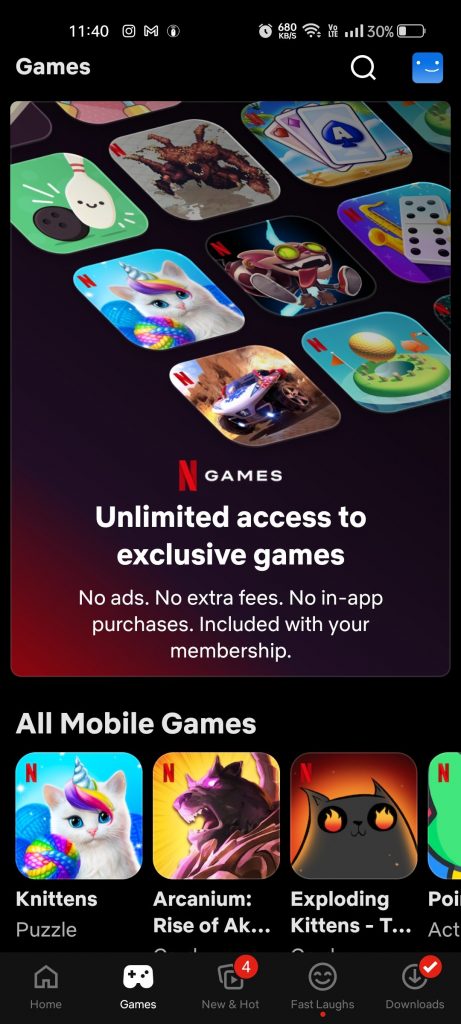 Have you already downloaded the Netflix app on your Apple or Android device? When you first launch the app, you may see a Games tab at the bottom of the display. All users have not yet received this functionality. Not finding a Games tab? While navigating the Home page, you can come upon a breakout area devoted to video games.